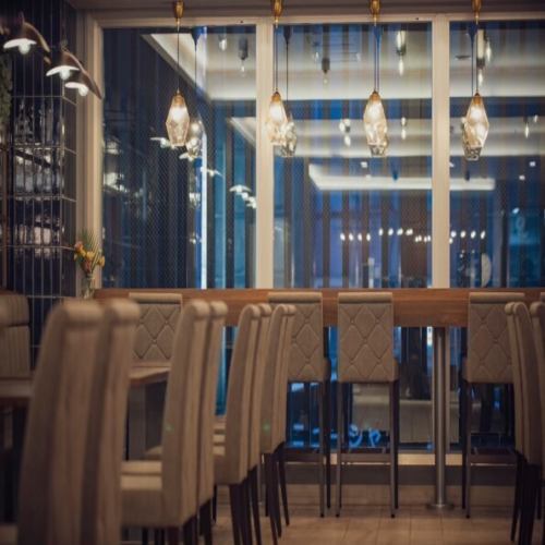 大きな窓に面したカウンター席は全7席。お一人様でもお楽しみいただけます。